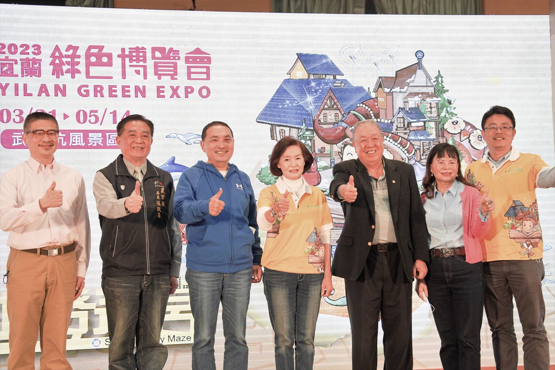 新北市侯友宜市長(左三)與宜蘭縣林姿妙縣長(左四)再次同台,於新北市政府大禮堂宣傳「2023宜蘭綠色博覽會」