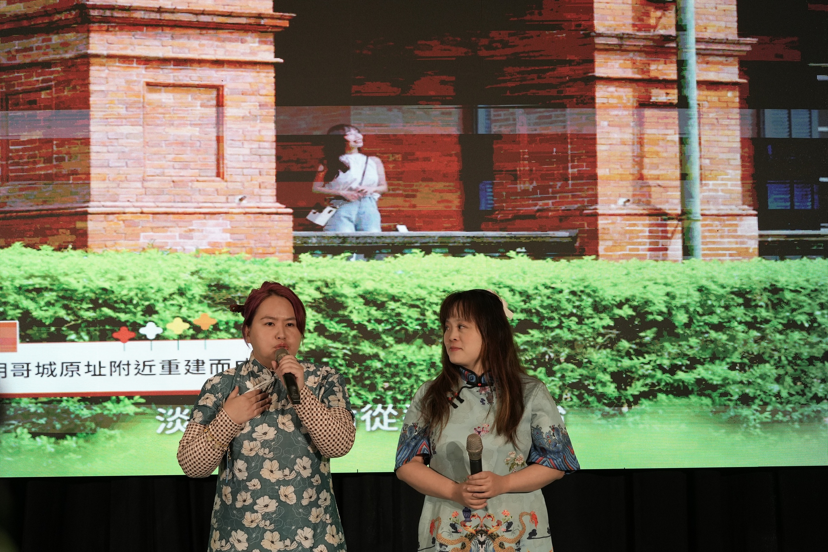 今(19)日「Point ( ) Out! 新北漫遊指南」記者會邀請旅遊部落客帆帆貓(左)及tin tin(右)分享「穿越時空滬尾歷史行腳」遊程的體驗心得