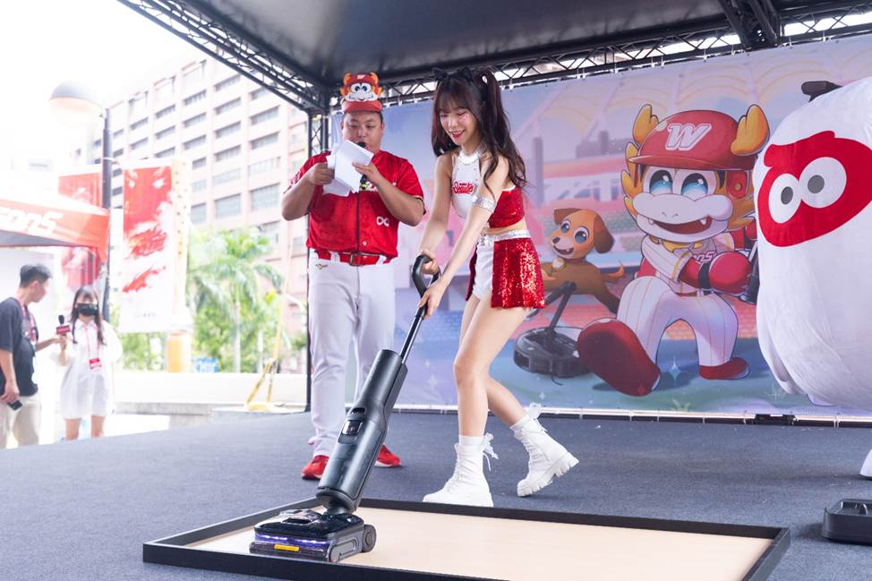 現場更邀請味全龍啦啦隊成員李多慧化身「一日清潔特派員」驚喜登場,不僅親自示範洗地神器 F25 Ultra 的操作,分享居家清潔心法,也以「最美應援」之姿登台互動,熱力帶動現場氣氛。此外,啦啦隊成員也帶領粉絲參與限時清潔挑戰,搶先體驗H60可彎折吸塵器與 H60 Hub Pro防纏抗敏自集塵吸塵器及Qrevo EdgeT掃拖機器人等全新機款。