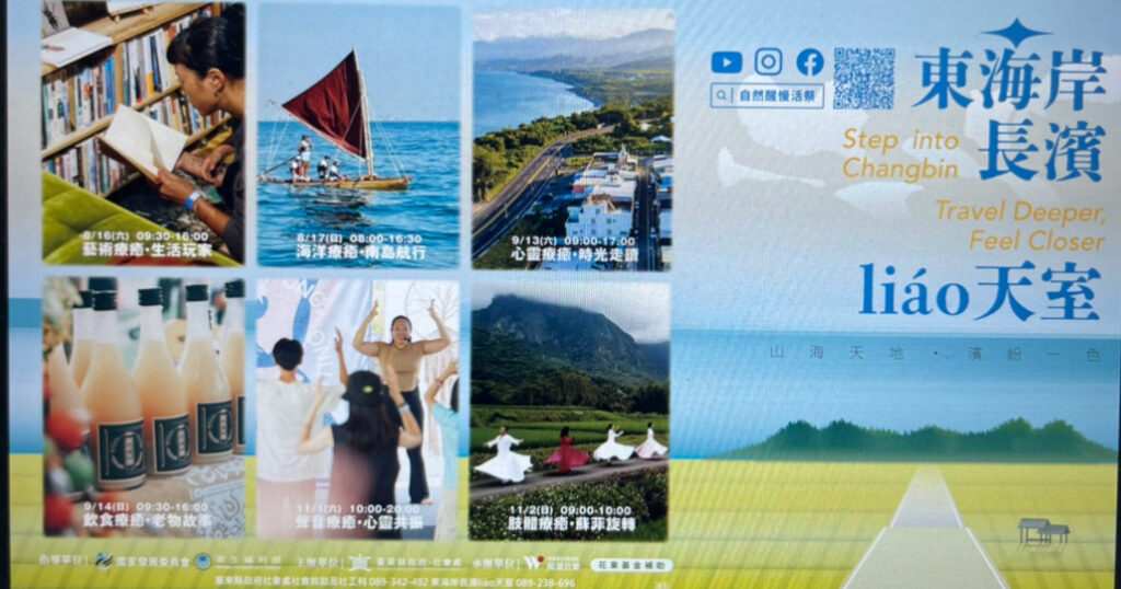 自今年5月起,長濱已陸續展開多場療癒活動,包括百人晨曦瑜珈、森林療癒探索,接續登場的8月活動除了五感市集外,還包括8月16日的《藝術療癒・生活玩家》與8月17日的《海洋療癒・南島航行》,將帶領民眾從藝術創作、文化實作延伸至南島式航行的學習,重新想像身體與文化之間的流動關係。進入9月,9月13日的《心靈療癒・時光走讀》與9月14日的《飲食療癒・老物故事》,將以走讀與味覺記憶探索長濱的人文軌跡;11月包括11月1日的《聲音療癒・心靈共振》聲音冥想馬拉松,帶來聲音冥想與內在的即興共鳴;壓軸場11月2日《肢體療癒・蘇菲旋轉》為國內首次舉辦的百人蘇菲旋轉大型活動,邀請全臺民眾於金剛大道梯田花海中與天地共舞,畫下計畫最具象徵意義的句點。