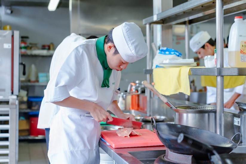 相可高校學生首次嘗試去骨工法,紛紛大呼挑戰。開平餐飲學校/提供