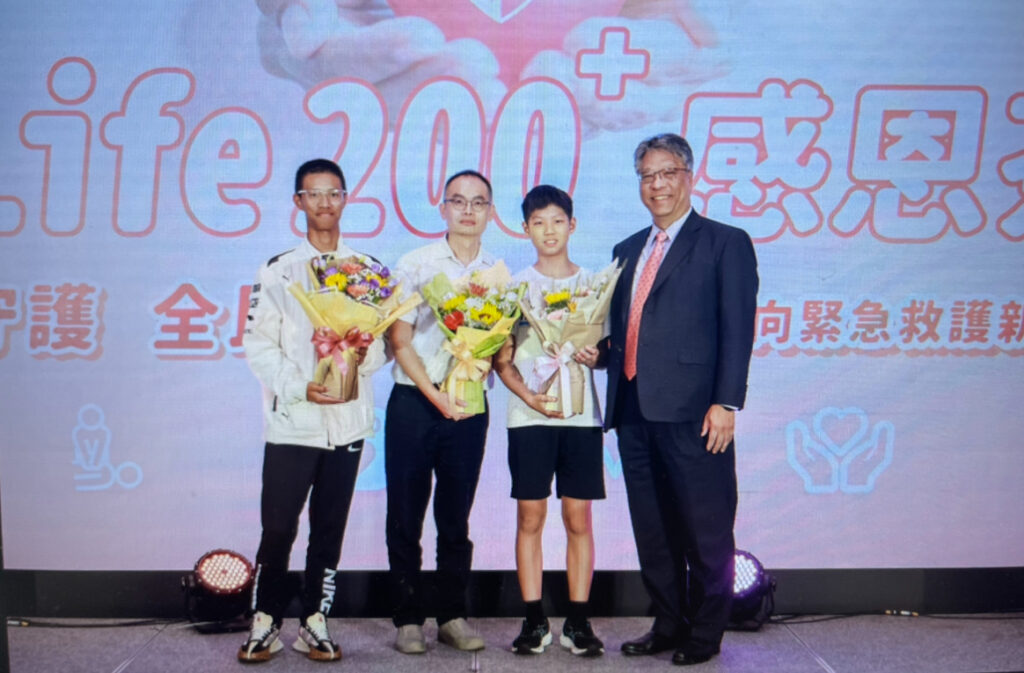台灣飛利浦董事長胡孝揚與因AED救回的重獲新生者合影,見證「New Life 200」的生命奇蹟
