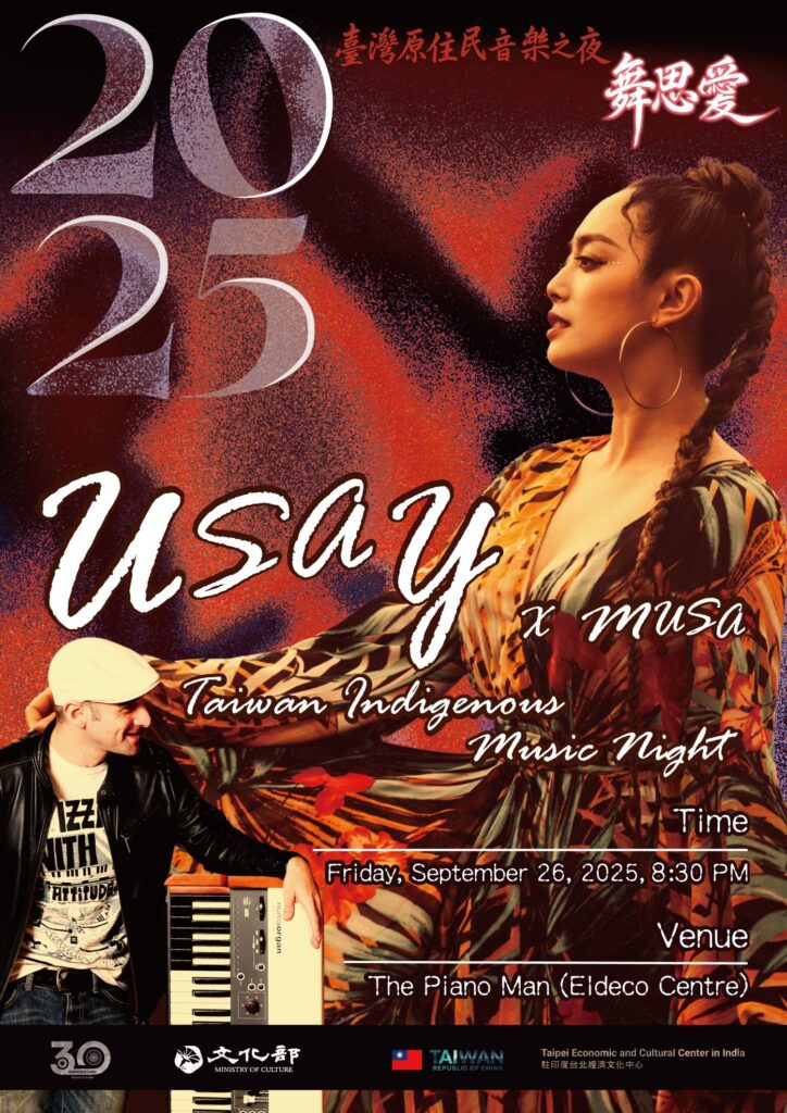 在文化部與駐印度代表處文化組支持下,將於9月26日在德里知名音樂場館「鋼琴人爵士音廠」(The Piano Man Jazz Club)舉辦「2025臺灣原住民音樂之夜」,邀請第35屆金曲獎最佳原住民語歌手舞思愛‧羔露(Usay Kawlu)與國際知名樂手明馬丁(Musa)同台演出,透過融合傳統與現代的音樂形式,帶給印度觀眾耳目一新的體驗,並感受臺灣原住民音樂的力量與魅力。