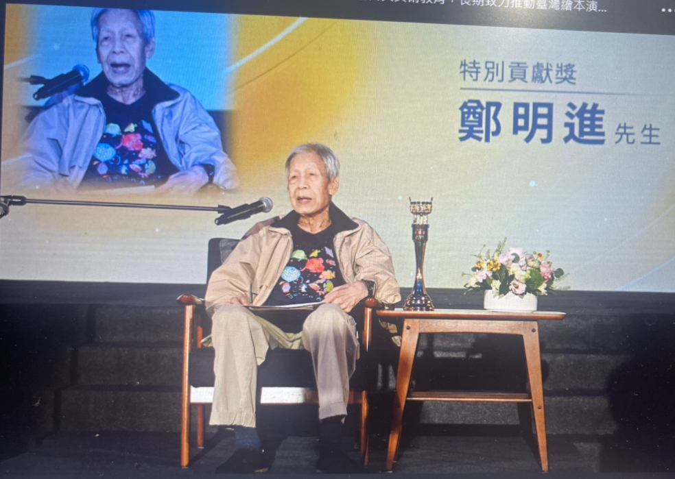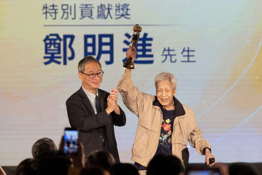 代表正在花蓮勘災的行政院長卓榮泰頒發特別貢獻獎予鄭明進(右),所有出版界後進給予最熱烈的掌聲及喝采。-1024x683.jpg)