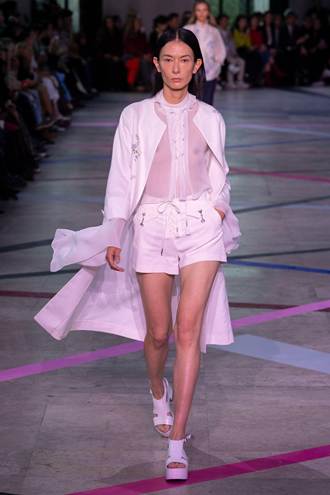 此次模特兒行列中,特別邀請近期在巴黎時尚舞台上發展亮眼的台灣模特兒 劉欣瑜,再度踏上SHIATZY CHEN伸展台。她以沉穩步伐與優雅氣場,演繹夏姿「柔中帶剛」精神,十字繡白色連袖外套,融入西式波西米雅風格與東方剪裁,完美展現東方女性的力量與優雅並存之美。