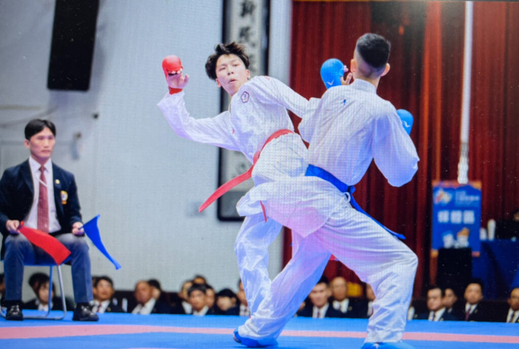 新北市選手徐立緯在114全運會空手道競賽榮獲男子組個人對打第一級金牌