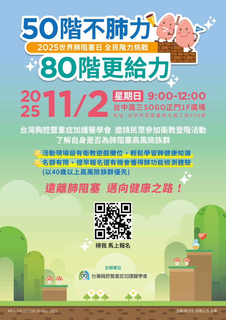 舉辦【2025世界肺阻塞日 全民階力挑戰】活動,邀請民眾一同「階」出健康,用行動守護肺部功能!👉