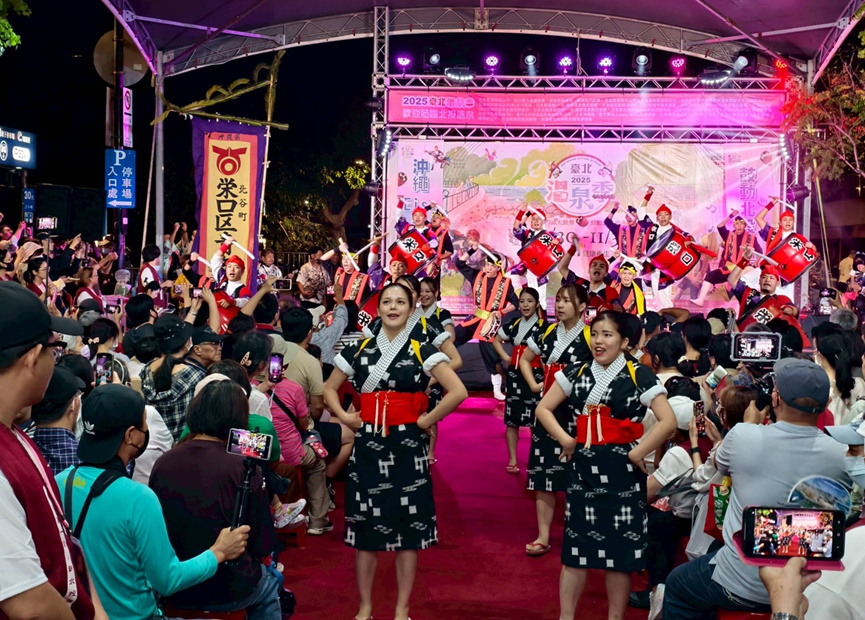 「2025臺北溫泉季」10月30日至11月3日在新北投捷運站周邊熱鬧登場。今(114)年活動以「沖繩Eisa太鼓祭」為主題,特別邀請日本沖繩北谷町太鼓舞祭表演團隊擔任主場演出,臺北市長蔣萬安也親自出席活動啟動儀式,與現場民眾一同感受太鼓舞震撼磅礡的節奏與熱烈氣氛。