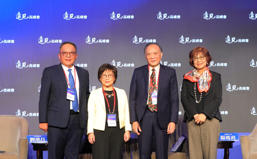 巨大集團董事長劉湧昌(左起)、緯穎科技董事長暨策略長洪麗寗、大成集團董事長韓家宇、《遠見雜誌》社長楊瑪利,分享地緣政治下的全球布局策略。黃菁慧攝