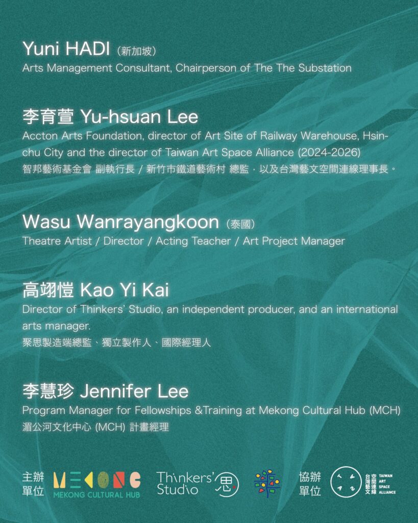 湄公河文化中心自2018年起與臺灣文化部合作,在台灣設立辦事處以及透過各項計畫促進臺灣與東南亞的文化交流和合作,該中心搭建的亞洲網絡,也力促藝術在社會參與及永續議題上有更積極的角色和可能,陸續也促進許多跨國合作。與臺藝大藝政所的合作,近一步將深耕的東南亞網絡,分享給臺灣的高教場域,並搭建與國際非營利組織的合作機制,進行區域性的知識交換及往來,共同形成更大的亞洲區域文化影響力。
