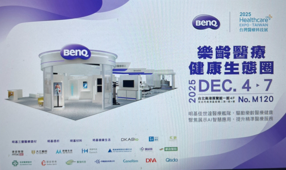 明基佳世達集團誠摯邀請您蒞臨參觀 2025台灣醫療科技展,共同見證樂齡醫療健康生態圈的創新整合。12月4日至7日,歡迎至南港展覽館一館4樓的M120展位參觀。