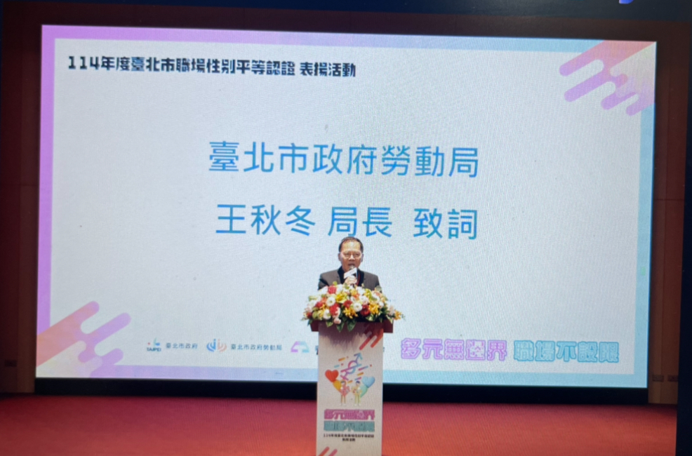 王秋冬局長指出,臺北市推動職場性別平等的核心精神,是與國際趨勢並行,希望企業以開放、多元、創新的態度投入,吸引更多單位加入職場性別平等的推動行列。他強調,「這不只是一次認證,更是一段追求公平與進步的重要歷程」,勞動局深知性別平等仍需長期投入,唯有持續努力,才能讓每位受僱者在友善、公平的環境中工作,充分發揮自身潛力,共同打造真正平等的職場文化。