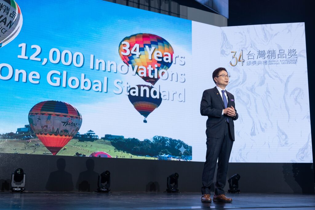 貿協董事長黃志芳於第34屆台灣精品獎頒獎典禮致詞。(貿協提供)