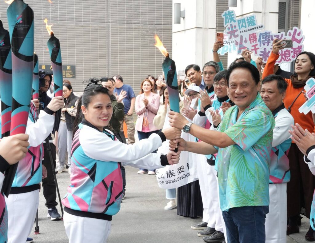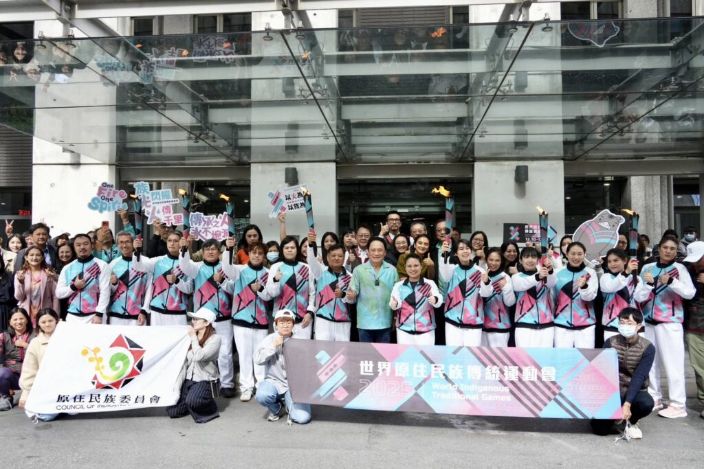 「2025世界原住民族傳統運動會」的聖火自11月27日由屏東縣起跑,經過39個原鄉後,今(4)日聖火隊伍抵達位於新北市新莊聯合辦公大樓的原住民族委員會。原民會曾智勇Ljaucu‧Zingrur主委親自率領同仁熱情迎接,從傳遞人員手中接過象徵原住民族精神與團結的聖火,並預祝後續傳遞行程平安順利,賽事圓滿成功。