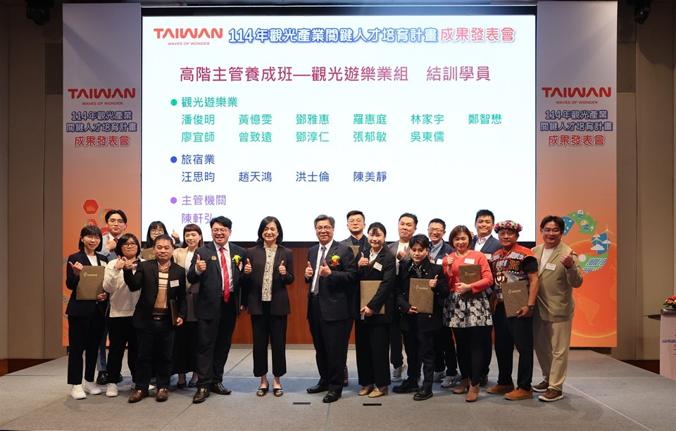 為推動觀光產業永續創新與數位轉型,交通部觀光署於114年積極推動「觀光產業關鍵人才培育計畫」,以增進從業人員專業素養,進而帶動整體產業升級。此項計畫聚焦於「永續x數位」雙軸轉型,透過高階主管養成班、中階主管培訓及觀光論壇等三大課程,為企業育才,提升從業人員競爭力,開拓視野與格局,並於本(5)日在台北遠東香格里拉舉辦成果發表會,分享114年度的培訓成果。