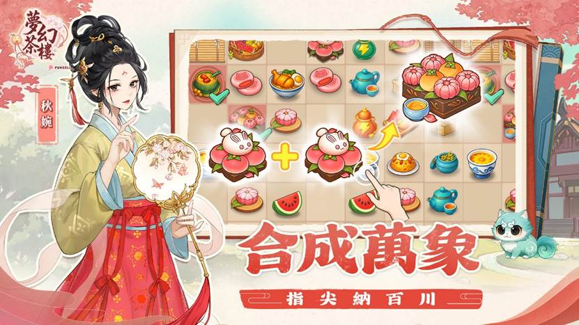 玩家可透過拖曳合成方式製作各類甜點、茶飲與道具,並藉此賺取金錢,用於升級與裝潢自家茶樓。
