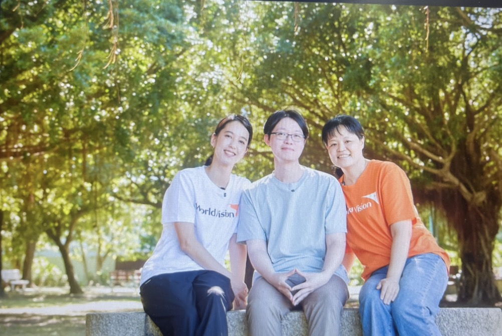 4.陳庭妮看見自立青年紹華(中)與陪伴他長大的展望會社工魏汝珍(右)希望對方更好的心情,深受感動。(台灣世界展望會提供)