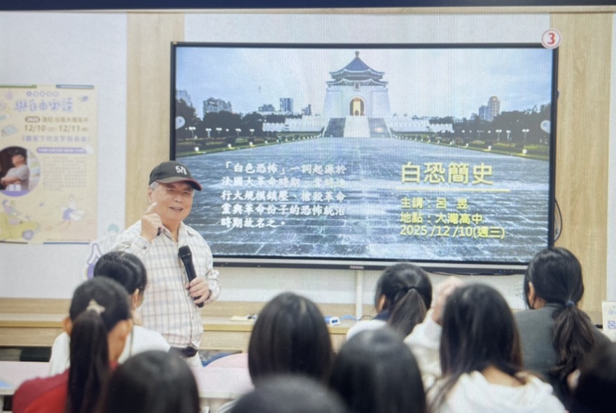 國家人權博物館「2025人權故事車-與自由樂讀」校園巡迴活動於12月10日至11日進駐臺南大灣高中,10日並舉辦「真人圖書館」,邀請白色恐怖政治受難者、同時也是獄中文學代表作家呂昱前輩,透過他的生命故事與文學創作經驗,引導師生認識臺灣人權發展的歷史,啟發思考民主、自由與人權的意義。