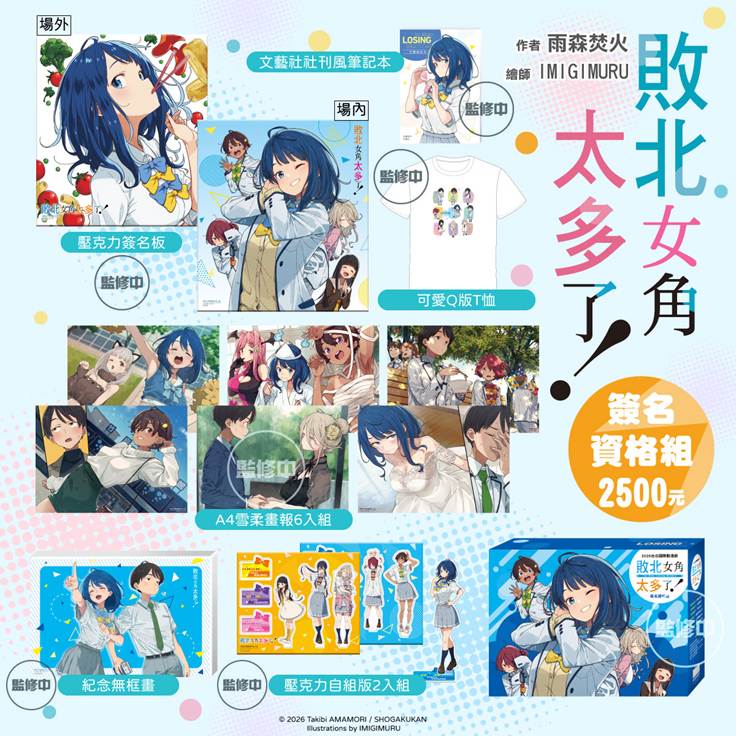 插畫‧IMIGIMURU老師則是知名漫畫家,代表作為《這個美術社大有問題!》,也曾擔任《Lycoris Recoil 莉可麗絲》系列的角色設計,筆觸簡潔且擅長運用鮮豔的色調,在本作中也為各具特色的「敗北女角」們繪製了生動可愛的形象。