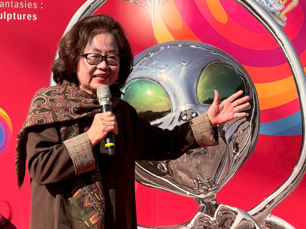 白鷺鷥文教基金會陳郁秀榮譽董事長於史博館《鏡花蟲洞宴》洪易戶外雕塑展致詞