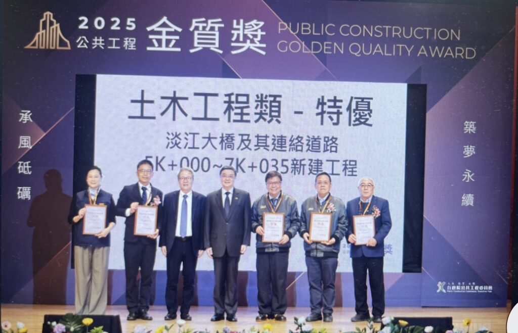 行政院公共工程委員會於今(21)日舉行「第25屆公共工程金質獎」頒獎典禮,行政院院長卓榮泰親臨典禮,並頒發「公共工程品質優良獎」、「公共設施維護管理獎」及「個人貢獻獎」特優獎,向得獎團隊與觀禮人員表達誠摯感謝。