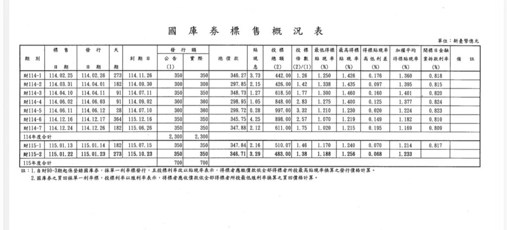 國庫券標售概況表