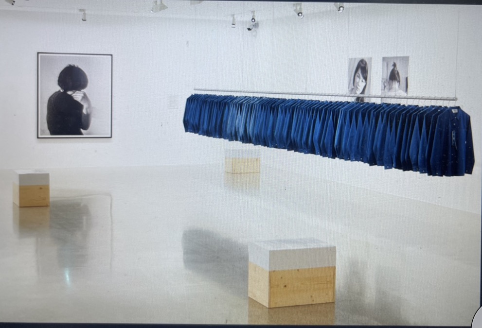 黃博志本次展出作品為「生產線-中國製造與臺灣製造」(Production Line–Made in China & Made in Taiwan,2014–2020),創作靈感來自臺灣紡織產業因時尚生產外包至深圳而逐漸沒落的歷史背景。藝術家將一排排制式化的藍色牛仔襯衫,與縫製這些衣物的年輕女性(其中包括黃博志母親)的照片並置呈現,直指勞動者在全球化生產鏈中被隱沒的身影。