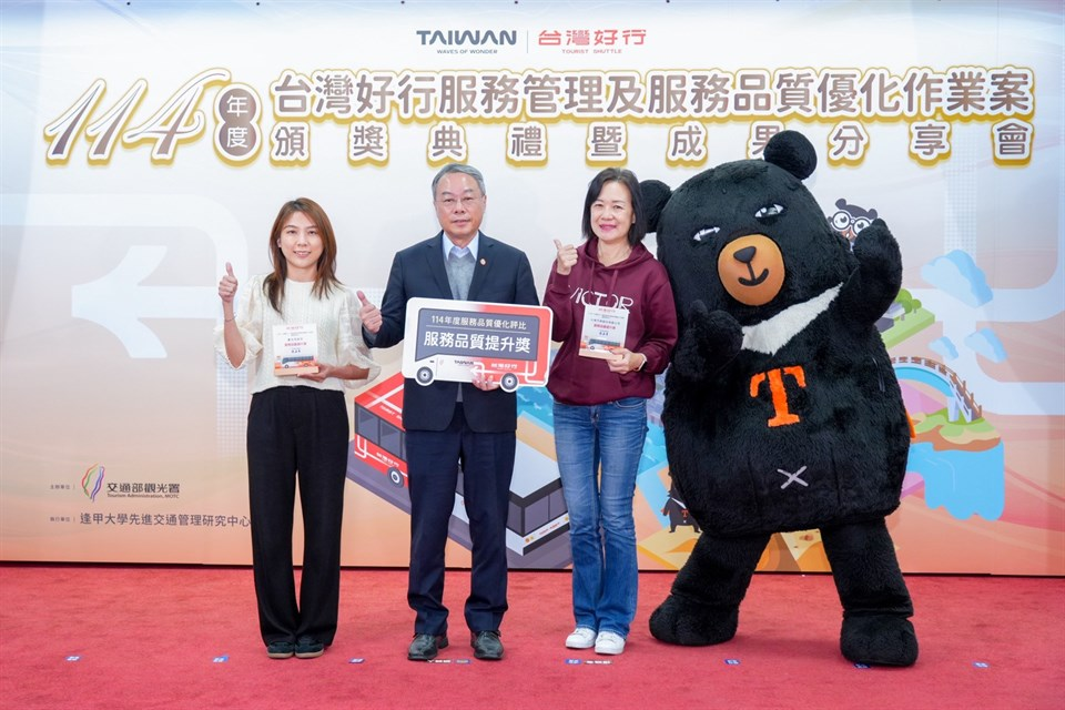 交通部觀光署致力推行「台灣好行」景點接駁服務,提供國內外自由行旅客低碳、直截且友善的大眾運輸旅遊服務,串聯全臺主要觀光景點與各大交通樞紐,截至114年底已開行90條路線,為維護台灣好行優良服務品質,觀光署每年皆委託第三方公正機構辦理評鑑作業,透過考核評鑑、績優獎勵、標竿學習等過程建立良性競爭機制。今年評鑑結果,在推動單位部分,一般類型路線之推動單位第1名由推動皇冠北海岸線的北海岸及觀音山國家風景區管理處拔得頭籌,該管理處串聯北海岸18個人氣景點,推出多款主題套票,並結合自行車旅遊,充分呈現路線特色,第2、3名分別為臺中市政府及大鵬灣國家風景區管理處;郵輪式公車之推動單位第1名則為推動玉長豐濱線及東部海岸線的東部海岸國家風景區管理處,該管理處整合創新行動旅遊服務,導入科技創新及數位轉型,並配合環境教育辦理期間限定夜訪小野柳主題活動。