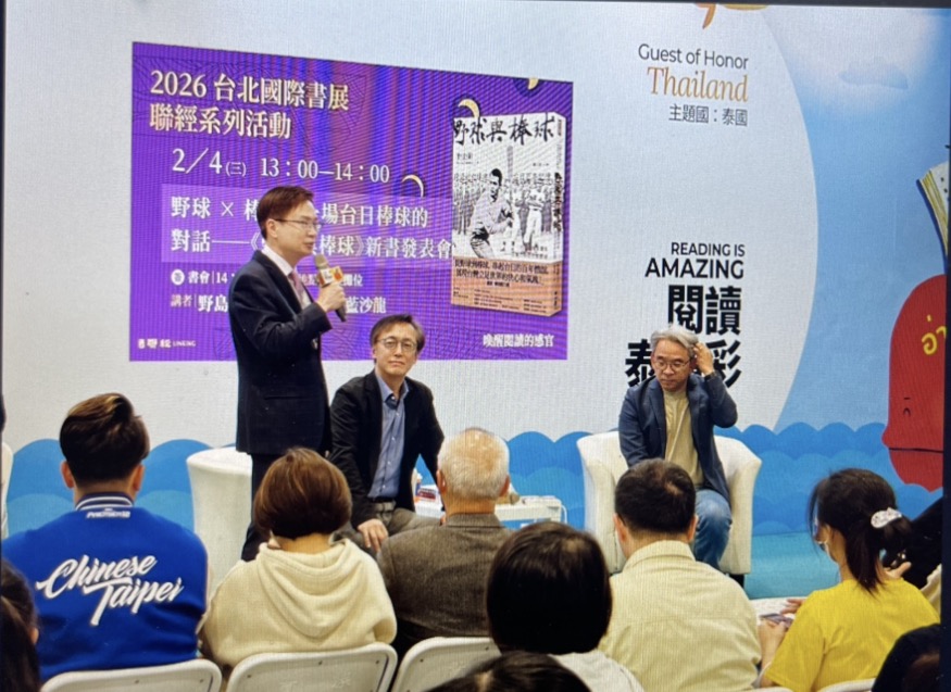 資深媒體人野島剛與成大歷史系副教授謝仕淵舉行對談,透過野島剛甫發行的《野球與棒球》一書來看台日間的情誼。開場由外貿協會董事長黃志芳引言,分享棒球在他生命中的意義,以及由他所見透過棒球建立的台日關係。現場還秀出陳傑憲的簽名球。而後前職棒選手周思齊更驚喜獻花,為2/4於書展現場舉行的《野球與棒球》新書發表會獻上祝福。