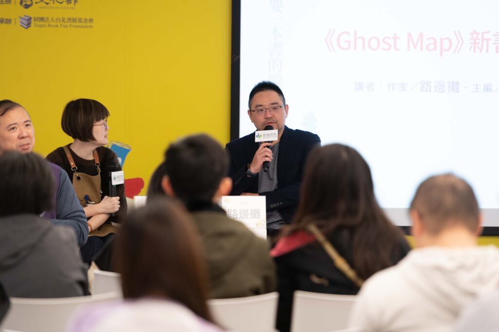 網路恐怖小說作家路邊攤今(2/7)日於台北國際書展出席《Ghost Map》新書分享會,與讀者面對面交流創作歷程與寫作思考。他指出,《Ghost Map》的創作靈感源自日常生活中對 Google Map 的使用觀察,尤其人們如何依賴地圖與評論選擇目的地的行為。