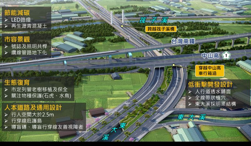 綠道路建設示範工程-台中市政路(環中路至工業區一路) (第2標)工程特色